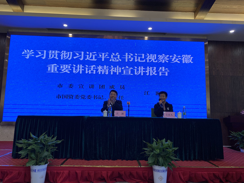 活動第二部分,公司邀請了市委宣講團成員、市國資委黨委書記、主任江瀾同志給公司全體員工作了《學習貫徹習近平總書記視察安徽重要講話精神》的宣講。江主任對習總書記視察安徽重要講話精神作了深刻的闡述,并結合實際對我公司為蕪湖市經(jīng)濟、產(chǎn)業(yè)發(fā)展所作貢獻、取得成績給予高度認可,進一步激發(fā)了公司全體員工干事創(chuàng)業(yè)的激情。