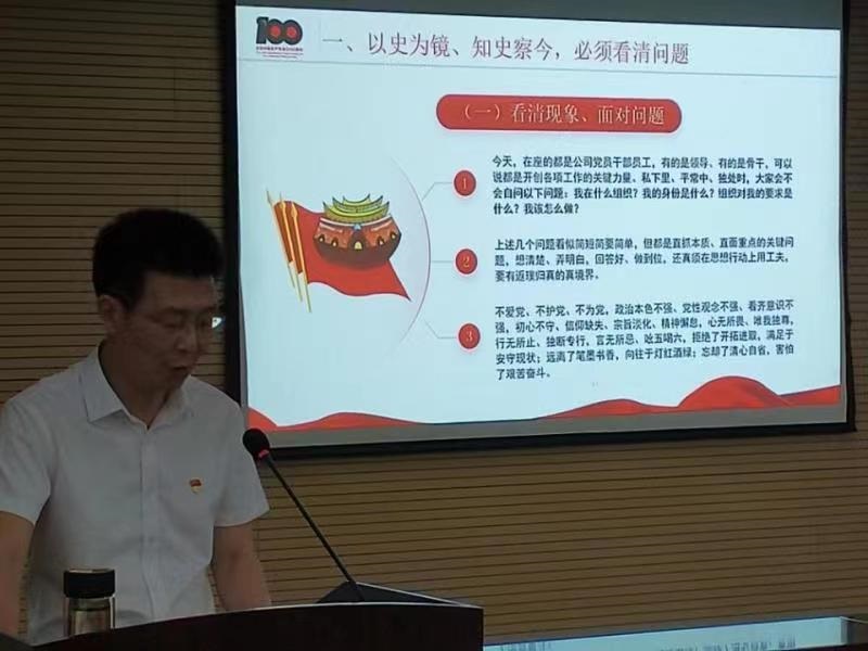 夏峰董事長以“以百年黨史砥礪初心使命在新征程上行大道擔(dān)大任成大器”為題講授專題黨課。報告從看清問題、守道明理、堅定理想、明德修身、擔(dān)當(dāng)作為五個方面勉勵公司全體干部員工作為新時代的建設(shè)者,要從百年黨史中汲取奮進力量,從過往的足跡中獲得啟示,初心不改、信仰不墜、使命不忘,共同以臨淵履冰的敬畏之心扛起新時代高質(zhì)量發(fā)展的重任。